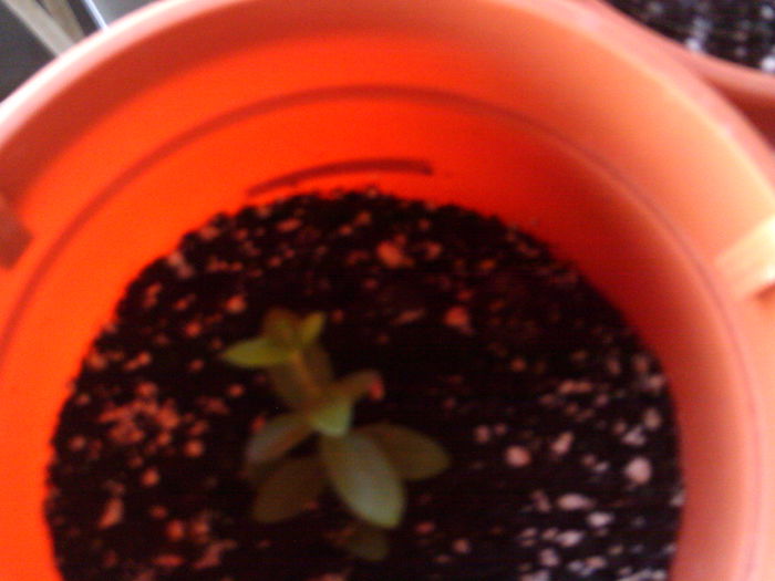 nu a mai crescut in schimb la una dintre ele, am senzatia ca vrea sa-i dea un lastar la vreun centimetru de acea frunzulita si ca sa ma conving mai repede le-am acoperit cu un bidon taiat ca sa fac efectul de sera si sa creasca mai repede!