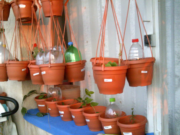 nu a mai crescut in schimb la una dintre ele, am senzatia ca vrea sa-i dea un lastar la vreun centimetru de acea frunzulita si ca sa ma conving mai repede le-am acoperit cu un bidon taiat ca sa fac efectul de sera si sa creasca mai repede!